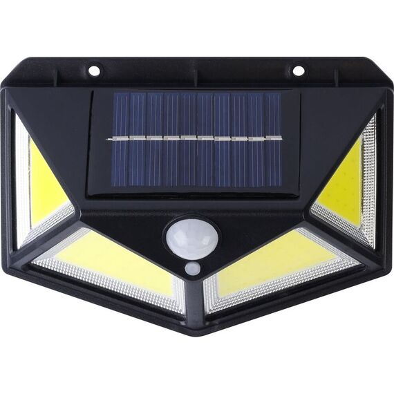 Материал: металл и пластик, Тип светового освещения: COB 10 Вт, Источник питания: аккумулятор Li-ion 1200 мАч, Солнечная батарея: 0,6 Вт (17% конвертация), Порог срабатывания датчика движения: <10 Лк, Дальность освещения: 12 м, Угол обзора: 120 градусов, Время отключения: 10 сек. Упаковка: цветная картоная коробка