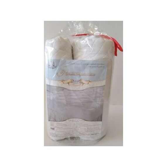 140*200, на резинке, основная ткань-полотно стеганное двустороннее (микрофибра (пл.75+/-5 гр/кв.м, 100% ПЭ, вложение-синтепон, на 4-х резинках по углам упаковка: ПВХ – тубус , фирменный вкладыш). Пришивного борта нет, есть резинки по углам. Цвет белый