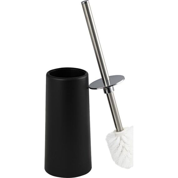 Ёрш сантехнический напольный чёрный, конусный. Гармоничный дизайн и чёрная расцветка туалетного ершика отлично впишется в любой интерьер. Напольный аксессуар включает в себя ерш для чистки с хромированной ручкой и пластиковую подставку для ерша. Щётка для унитаза имеет густой жесткий ворс, обладает высокой стойкостью к стиранию. Туалетный ерш выполнен из высокопрочного пластика АБС и предназначен для использования в помещениях с повышенной влажностью, он безопасен и не требуют специального ухода. В коллекции представлены: дозатор для мыла, мыльница, напольный ершик для унитаза, стакан для зубных щеток. Габаритные размеры: высота 400 мм, высота колбы 220 мм, ширина 90 мм, диаметр основания 105 мм. Вес - 0,400 кг, объём - 0,00500 м3.