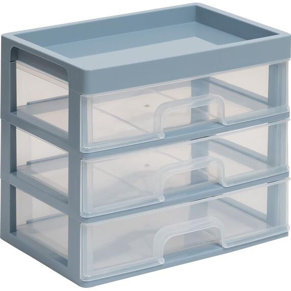 Органайзер для мелочей 3 ящика (серо-синий/прозрачный)