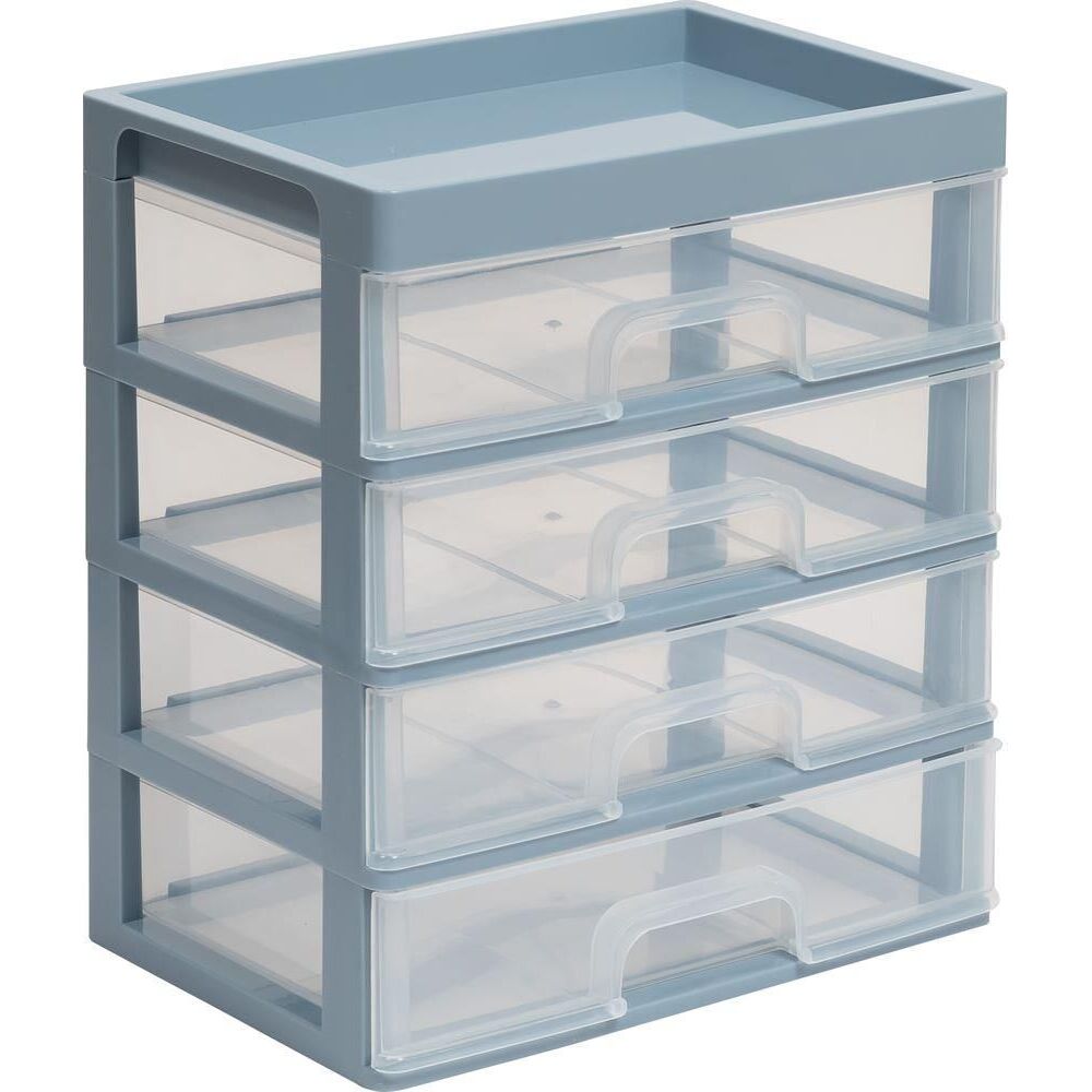 Органайзер для мелочей 4 ящика (серо-синий/прозрачный)