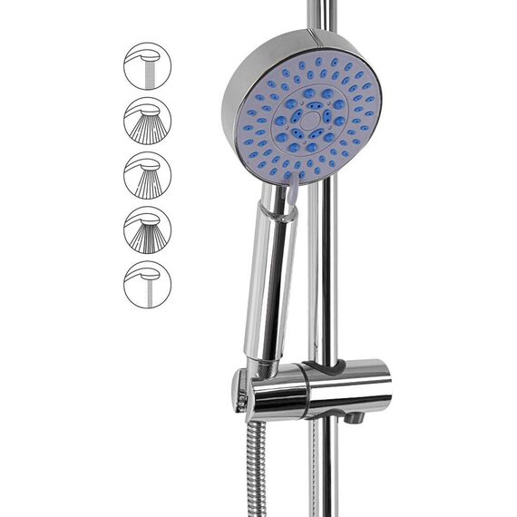 Душевая стойка тропический душ с круглыми лейками впишется в современную обстановку ванной комнаты. Произведена из нержавеющей стали и пластика АБС с хромоникелевым покрытием, износостойким и блестящим. Керамический переключатель работает даже при минимальном давлении воды, выдерживая свыше 300 000 рабочих циклов. Переключается поворотом ручки дивертора. Верхний душ произведен из пластика АБС и имеет шаровое крепление, что позволяет менять угол наклона. Работает в режиме «Тропический дождь» создавая мягкий обволакивающий поток струи, равномерно покрывают тело, массируя и тонизируя кожу. Силиконовые форсунки защищены от известковых отложений и легко поддаются чистке. Встроенный аэратор равномерно распределяет поток воды, делая гигиенические процедуры комфортными. Лейка в 3 режима произведена из высококачественного современного ABS-пластика, оснащена силиконовыми форсунками с функцией защиты от грязи и известковых отложений.