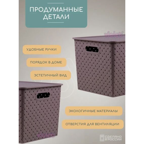 Корзина для белья VIOLET Береста 14л сирень 523110
