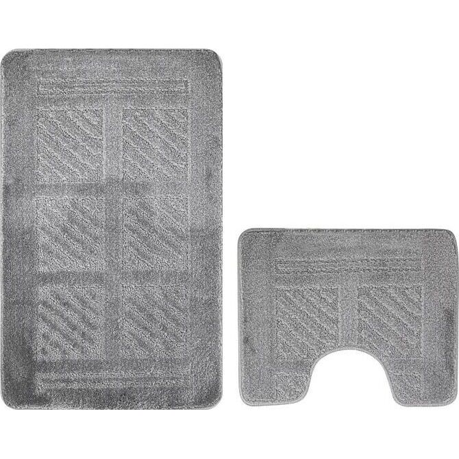 Коврики для ванной САНАКС 00284 CLASSIC UNI КВАДРАТЫ Коврик в ванную двойной СЕРЫЙ 55х90+45х55 см 100% полиэстер