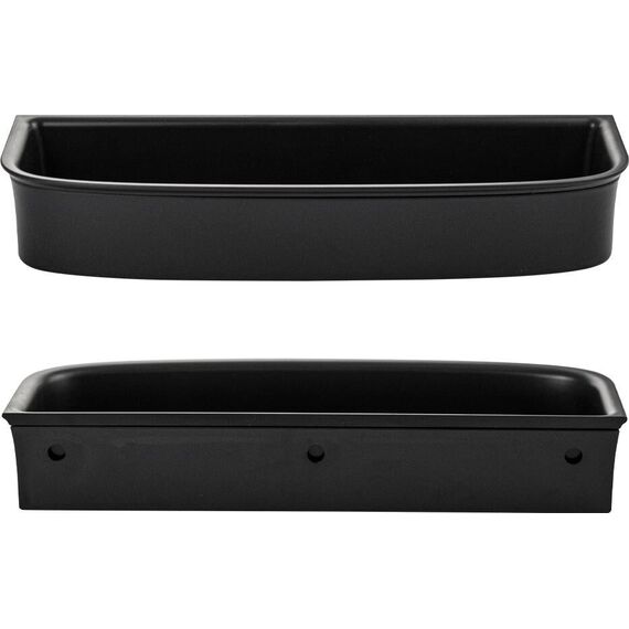 Полочка для принадлежностей прямая черная с литым дном, с черным пластиковым вкладышем, обладает высокими эксплуатационными характеристиками и подходит для использования дома, в общественных местах: отелях, ресторанах и пр. Изготовлена из прочного пластика АБС с матовым покрытием, которое придает безупречный вид и долговечность. Аксессуар не занимают много места, надежно фиксируется к стене при помощи набора креплений (входят в комплект) и служит удобным местом для хранения бытовых и косметических средств. Габаритные размеры: ширина 350 мм, длина края 125 мм, высота 55 мм. Вес - 0,55 кг, объём - 0,00416 м3