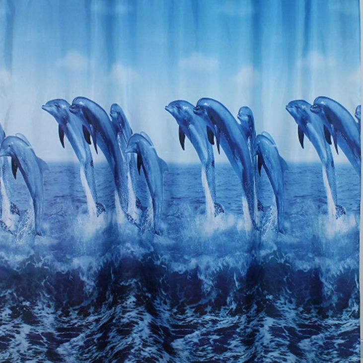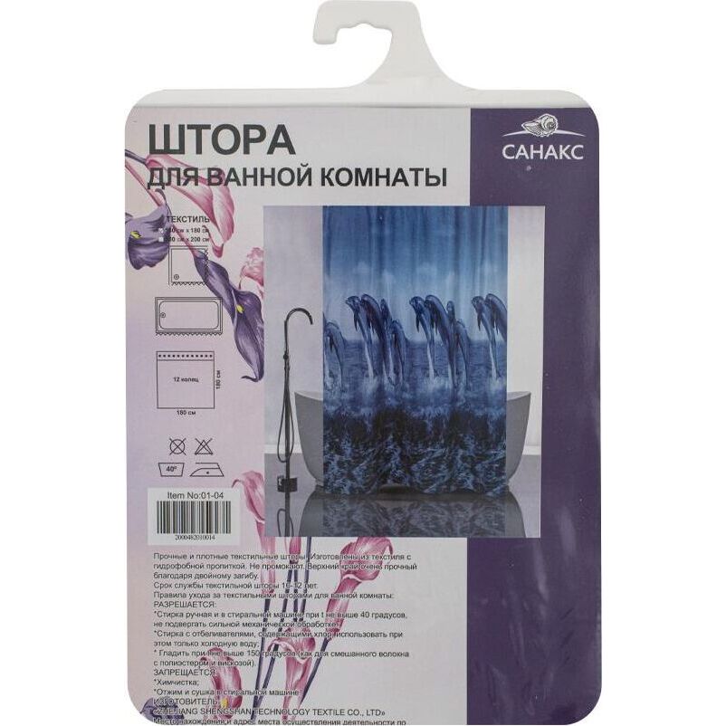 Штора для ванной САНАКС 01-04 Штора с рисунком ДЕЛЬФИНЫ, в ванную комнату, без колец-полиэстэр