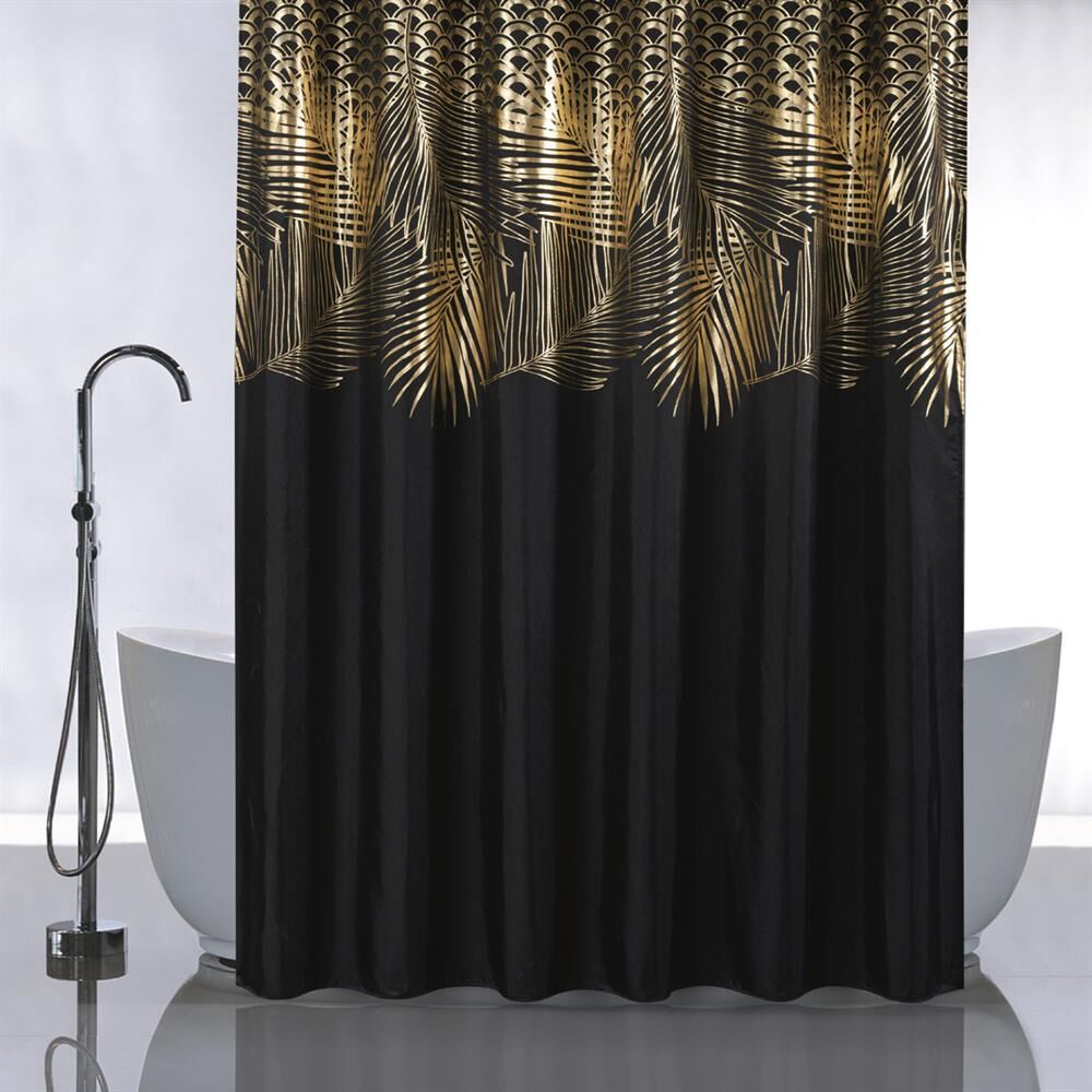 Штора для ванной САНАКС 01-107 Штора с рисунком, золотые перья на черном, в ванную комнату, без колец - полиэстэр, 180 х 180 см