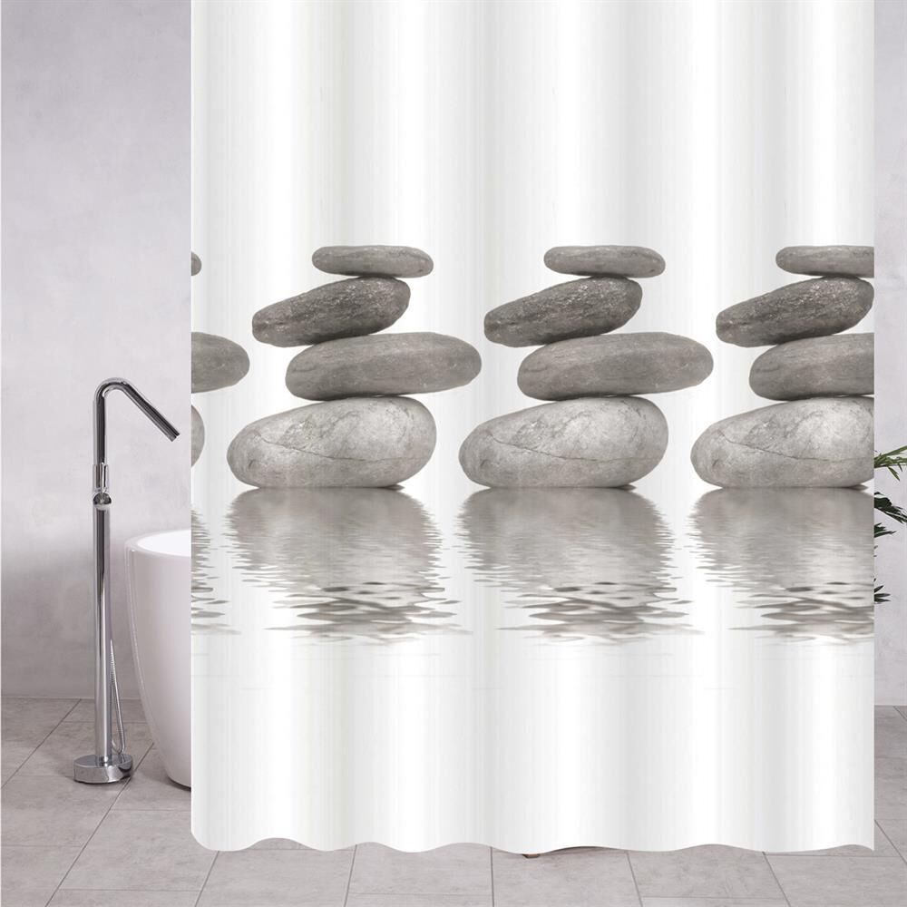 Штора САНАКС 06-01 Штора с рисунком, большие камни, матовая, в ванную комнату, с кольцами, PEVA, 180 х 180 см.