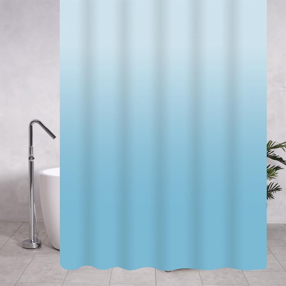 Штора САНАКС 06-03 Штора однотонная, голубой переход, матовая, в ванную комнату, с кольцами, PEVA, 180 х 180 см.
