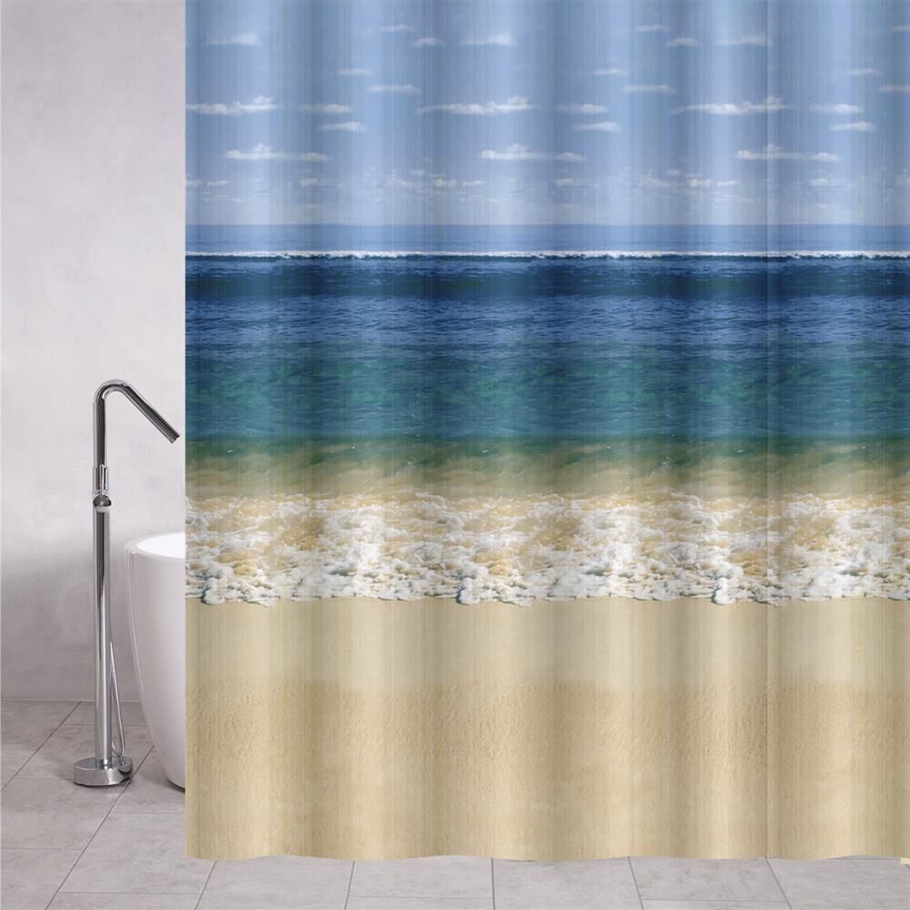 Штора САНАКС 06-06 Штора с рисунком, морской берег, матовая, в ванную комнату, с кольцами, PEVA, 180 х 180 см.