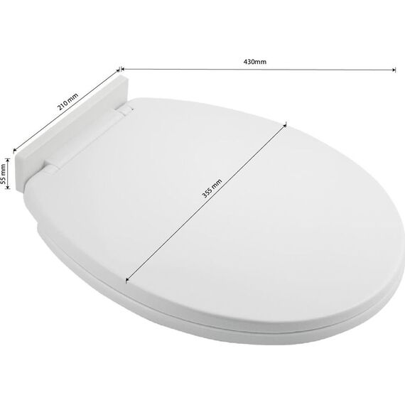 Пластиковое сиденье для унитаза белого цвета классической округлённой формы. Сиденье изготовлено из полипропилена – он обладает высокой износостойкостью, устойчивостью к агрессивным химическим веществам, экологичен и безопасен для здоровья. Специальные амортизаторы обеспечивают плавное и бесшумное закрытие крышки и сиденья унитаза, что предотвращает повреждение поверхности унитаза. Универсальный крепеж: 120-165 мм, входящий в комплект сиденья, позволяют установить его на максимально большое количество моделей унитазов. Не нужно тратить время на дополнительные замеры. Крепления прочно и надежно фиксируют сиденье на унитазе и не расшатываются со временем. Габаритные размеры: длина 430 мм, ширина 355 мм. Вес - 1,500 кг, объём - 0,00851 м3.