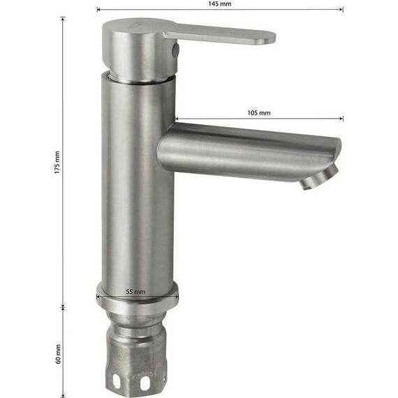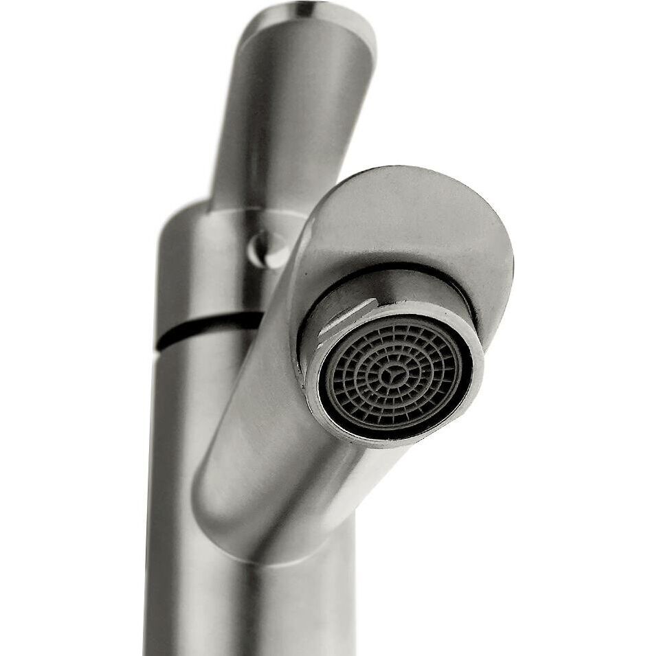 Смеситель для раковины, матовый литой корпус, из нержавеющей стали марки 304, с коротким литым изливом, литая ручка, шаровый. Крепление резьба - гайка, картридж d = 35 мм. Аэратор для экономии воды. Такая модель может использоваться на домашней кухне, на даче, в медицинских учреждениях и общественных местах. Габаритные размеры: высота 175 мм, длина 145 мм, длина излива 105 мм, диаметр посадочного седла 55 мм, длина резьбы 60 мм, длина подводки 450 мм. Вес - 1,000 кг, объём - 0,00308 м3. В комплекте паспорт, корпус, подводка 1/2, крепеж, набор прокладок.