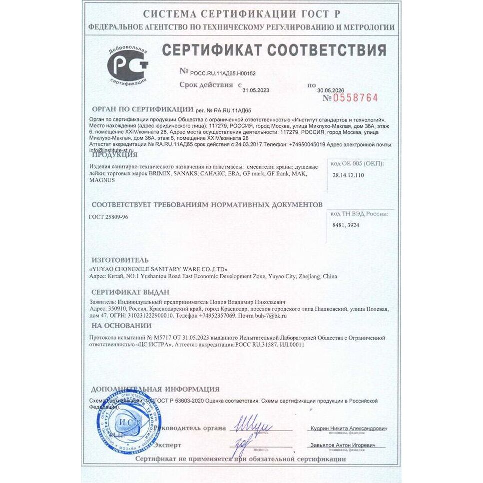 Смеситель на раковину BRIMIX 597 Смеситель на раковину, шаровый из высокопрочного пластика АБС - БЕЛЫЙ