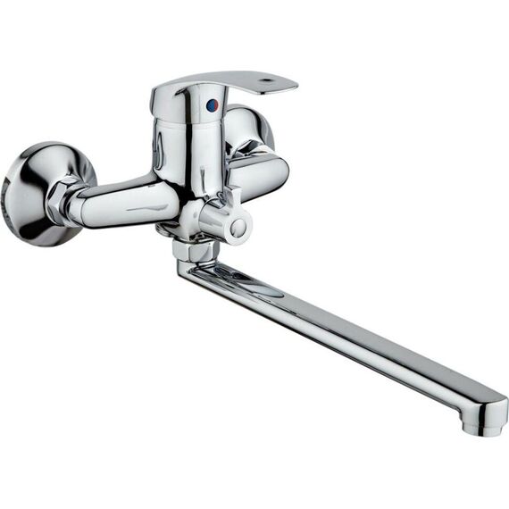 Смеситель универсальный с плоским прямым изливом и переключателем для душа - Покрытие корпуса: хром - Картридж керамический 40 мм - Шланг: длина 1,5 м - С поворотным изливом 400 мм - В комплекте с лейкой