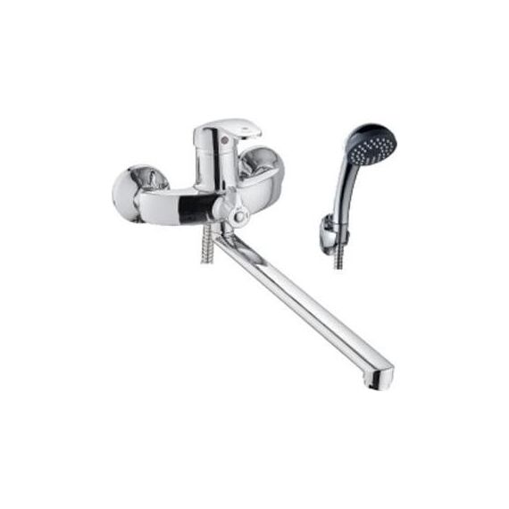 Смеситель для ванны АНТЕЙ®, серия Исток Характеристики: - Цвет: хром - Картридж: ø40, с керамическими пластинами. - Излив: L-образный, длинный, поворотный, длина – 300 мм - Аэратор: пластиковый, съемный, наруж. резьба Ø24мм - Дивертор: керамический, поворотный (90°) В комплекте: лейка для душа (ABS-пластик), шланг 150 см (нержав. сталь), держатель для лейки (ABS-пластик), для монтажа прилагаются эксцентрики, декоративные накладки.