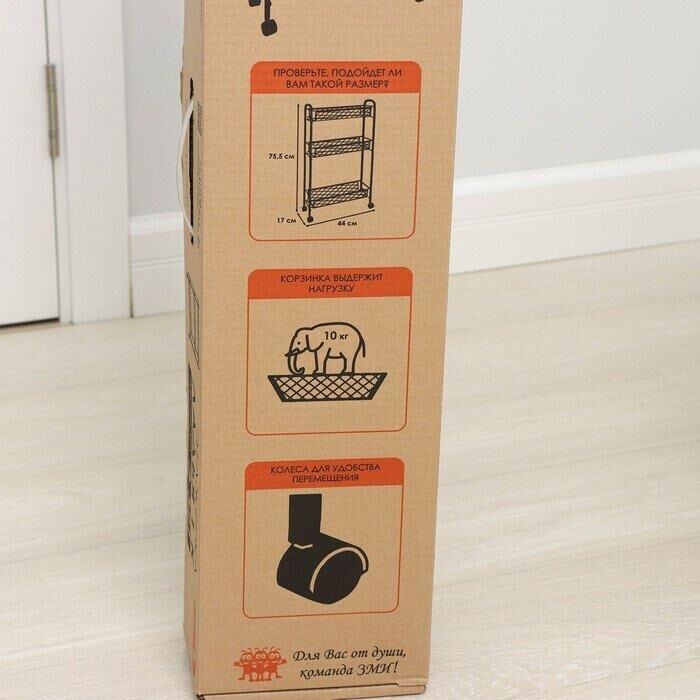 ЗМИ Этажерка Ладья 1К черн.на колес.Э321Ч - Сборно-разборная конструкция - три удобных корзины - увеличенное расстояние между нижними корзинами для высоких предметов - Пластиковые колеса - Пластиковый крючок для мелочей - допустимая нагрузка до 10 кг на корзину Материал — Стальная труба, просечно-вытяжной лист, проволока, пластик, полимерное покрытие Индивидуальная упаковка — 840х185х130 мм Габариты (Д*Ш*В) — 440х170х755 мм Вес Нетто — 2,4 кг Вес Брутто — 2,8 кг