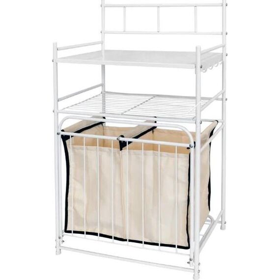 Двойная корзина для белья. Планка с крючками с одной стороны.Габариты 600х350х1050 мм. Размер упаковки 610х685х115 мм. Вес 6 кг. Высота между полками 190 мм