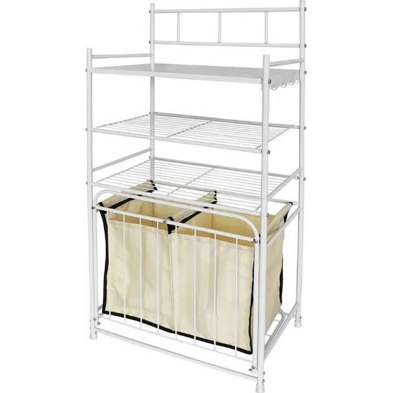 Двойная корзина для белья. Планка с крючками с одной стороны. Габариты 600х350х1240 мм. Размер упаковки 610х685х115 мм. Вес с упаковкой 6,8 кг. Высота между полками 190 мм