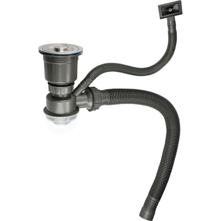 Сифон для мойки FABIA PROFI 8733 Сифон для мойки большая горловина с переливом, с отводом под сливной шланг и со сьёмной корзинкой для мусора