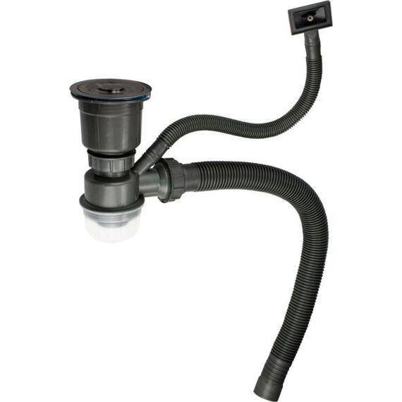 Сифон для мойки FABIA PROFI 8734 Сифон для мойки большая горловина с переливом ГРАФИТ, с отводом под сливной шланг и со съёмной корзинкой для мусора