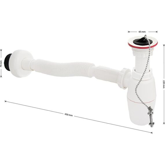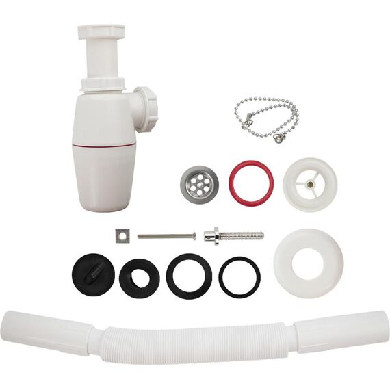 Сифон для раковины белый, с нержавеющей решеткой и пробкой это эстетичное и функциональное устройство для подключения раковины к системе канализации. Бутылочная модель изготовлена из АБС пластика, что обуславливает ее высокую прочность и долговечность. Она устойчива к перепаду температур, поэтому в раковину можно сливать кипяток. Изделие с фиксированной трубкой легко собирается и монтируется. Габаритные размеры: высота 220 мм, длина 450 мм, диаметр 65 мм. Вес - кг, объём - м3. Габаритные размеры коробки: ширина мм, высота мм, глубина мм.