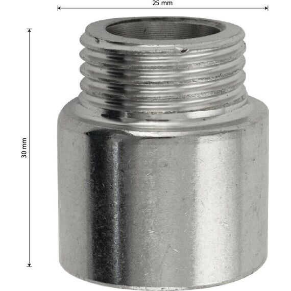 Удлинитель 20 мм, 1/2м х 1/2п, из нержавеющей стали марки 304. Габаритные размеры: высота 30 мм, ширина 25 мм. Вес - 0,020 кг, объем - 0,00003 м3.