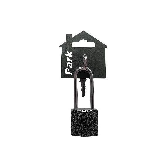 Замок навесной Park ВС3Р32 ключевой механизм - латунь 3 ключа в комплекте размер корпуса: 2,9 х 3,2 х 1,4 см размер дужки: d 0.91 х h 5,4 см размер замка: 8,3 х 3,2 х 1,4 см упаковка пластиковый подвес в виде домика и п/э пакет