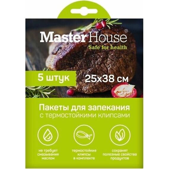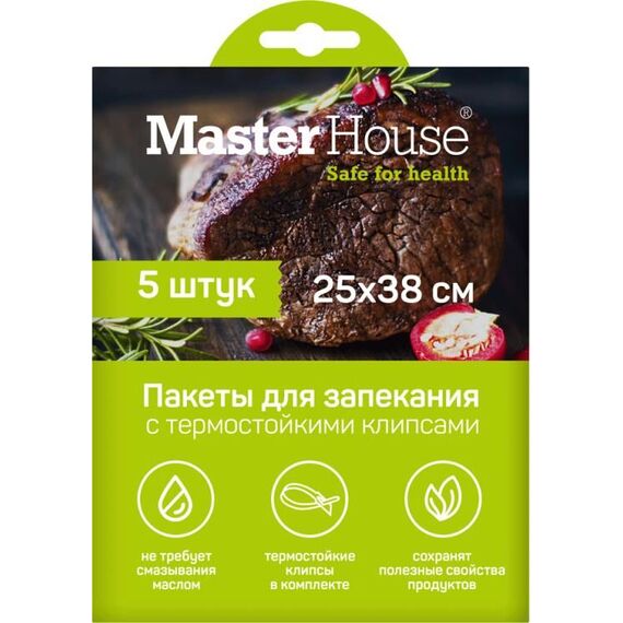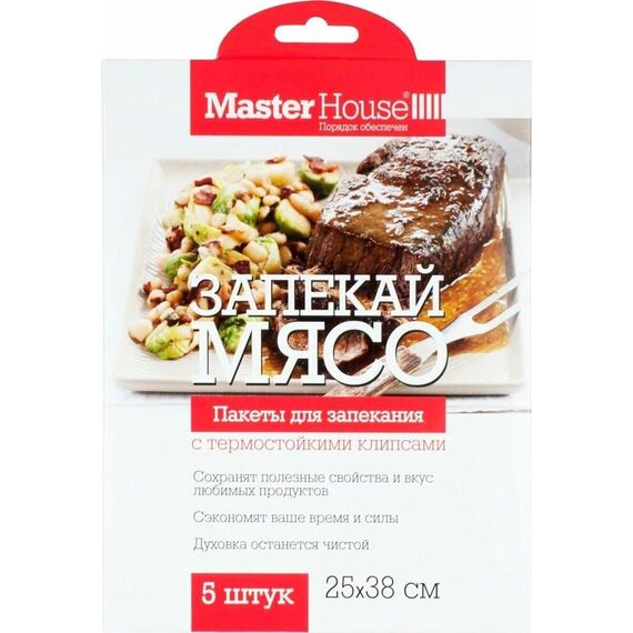 Пакеты для запекания MASTER HOUSE Запекай мясо с термостойкими клипсами 60497