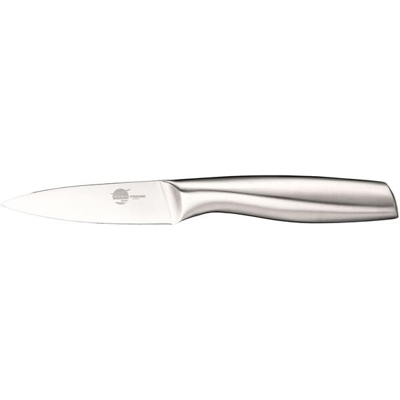 Нож кухонный для овощей из нержавеющей стали Японская технология изготовления ножей Нержавеющая сталь SS 3CR13 Цельнокованый клинок Двусторонняя заточка лезвий Длина лезвия: 82 мм Длина рукояти: 110 мм Материал рукояти: нержавеющая сталь Не рекомендуется мыть в посудомоечной машине