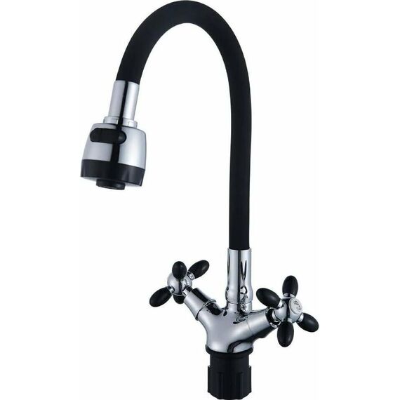 Смеситель АНТЕЙ 5770716-ANT Радуга Смеситель д/кухни с 2-мя рукоятками, с силиконовым изливом, креп.гайка, черный