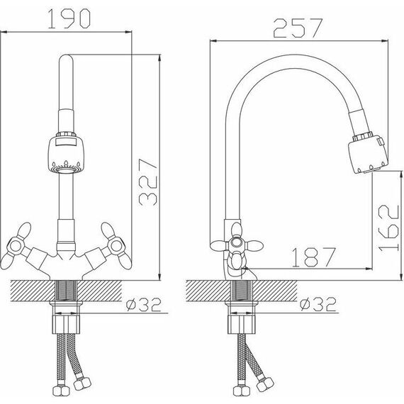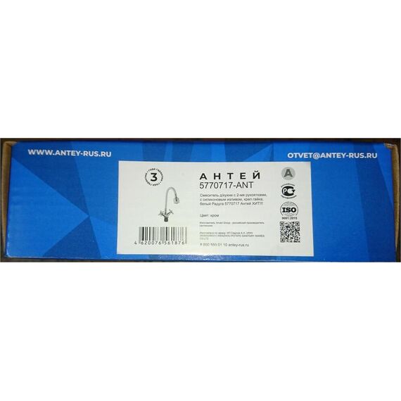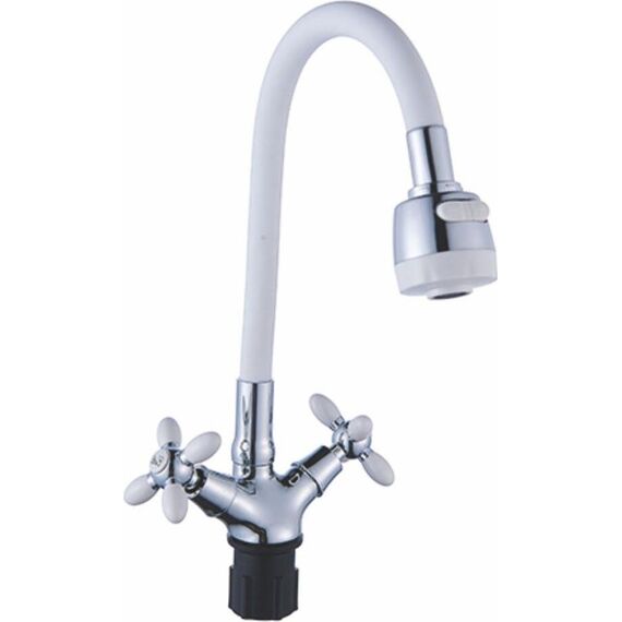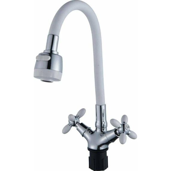 Смеситель АНТЕЙ 5770717-ANT Радуга Смеситель д/кухни с 2-мя рукоятками, с силиконовым изливом, креп.гайка, белый