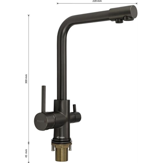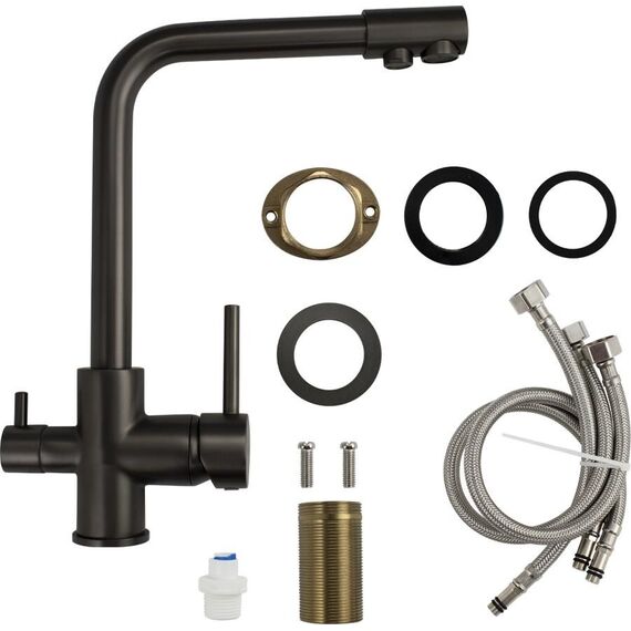 Смеситель для кухни MAGNUS 8247 Смеситель кухонный ГРАФИТ, шаровый, с двойным выпуском воды для фильтра, материал латунь