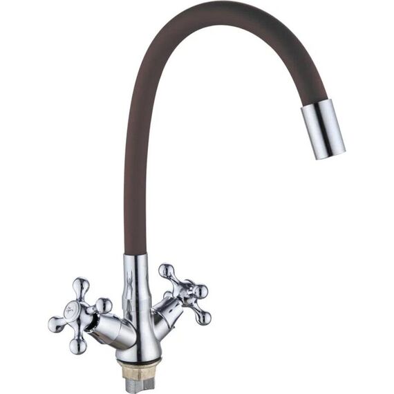 Смеситель GOTA ROCIO G095538-GOTA Barcelona Смеситель д/кухни с 2-мя рукоятками с высоким силиконовым изливом, креп. гайка серый