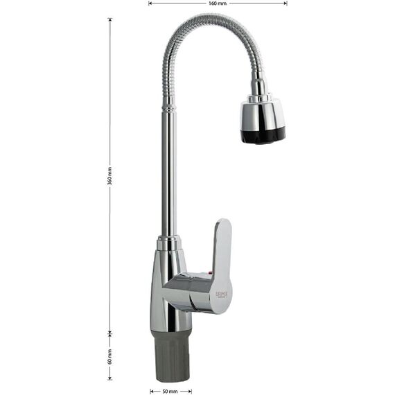 Смесители BRIMIX 5912 Смеситель для кухни, шаровый, из высокопрочного АБС пластика, с гибким изливом, с большим двухрежимным аэратором, цвет ХРОМ