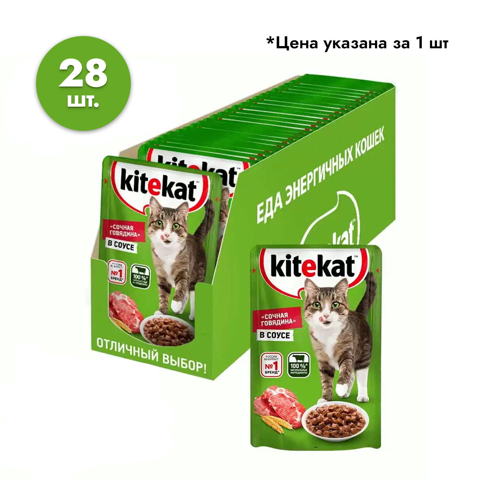 Kitekat Корм влажный для кошек Сочная Говядина в Желе, 85 г