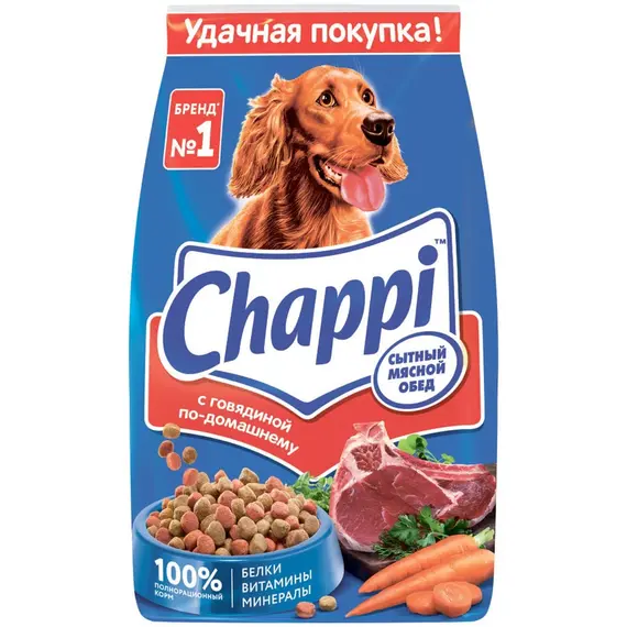 Полнорационный сухой корм для взрослых собак всех пород. Новое вкусное меню от Чаппи станет любимой едой вашей собаки. Выбирая полноценное сбалансированное питание Чаппи для Вашего любимца, вы можете быть уверены в том, что каждый день ваша собака будет довольной, игривой и здоровой.