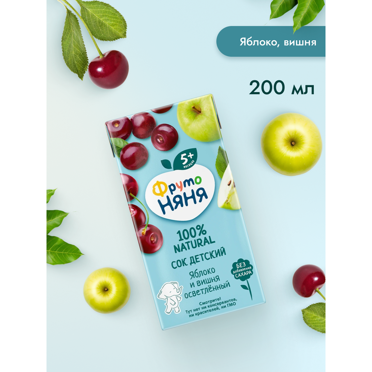 ФрутоНяня Сок из яблок и вишни, 0,2 л